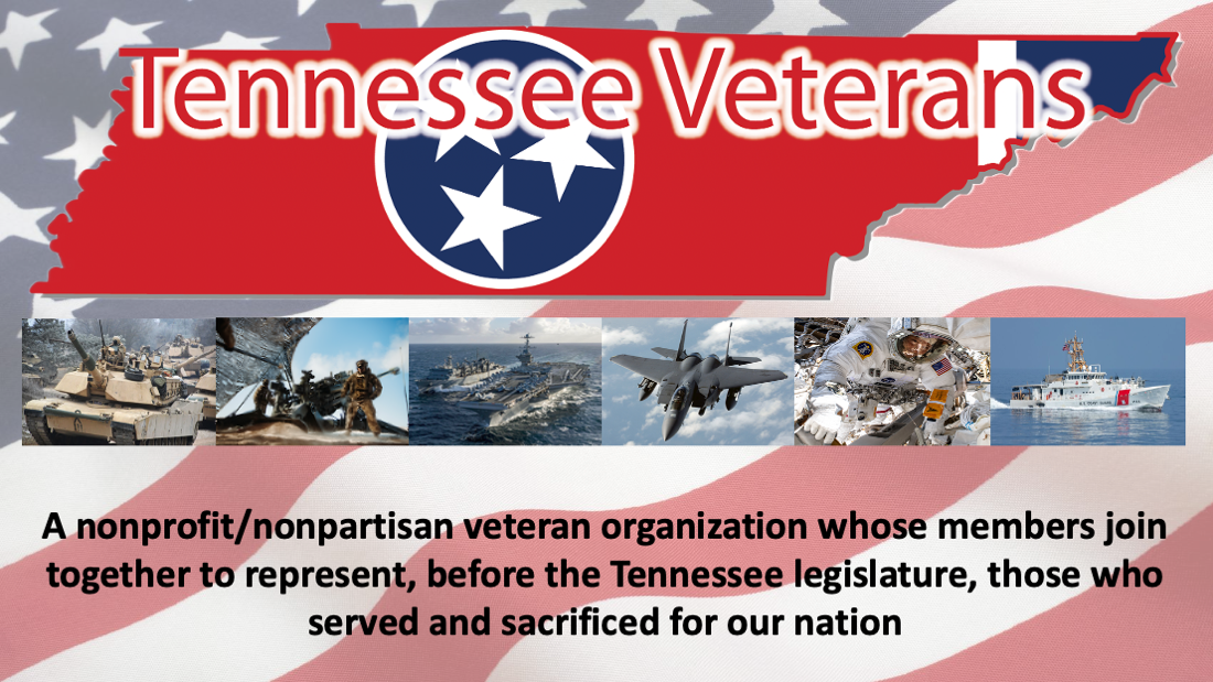 Tennessee Veterans (TNVET) membership is composed of 12 state veteran organizations with 50,000 members, who have joined forces in a cooperative effort address the legislative needs of veterans, active duty military and their families. These members represent all military branches. Our focus and goals are to work with all state legislators of Tennessee to develop and support legislation addressing the needs and issues of those who served or are serving our United States military.